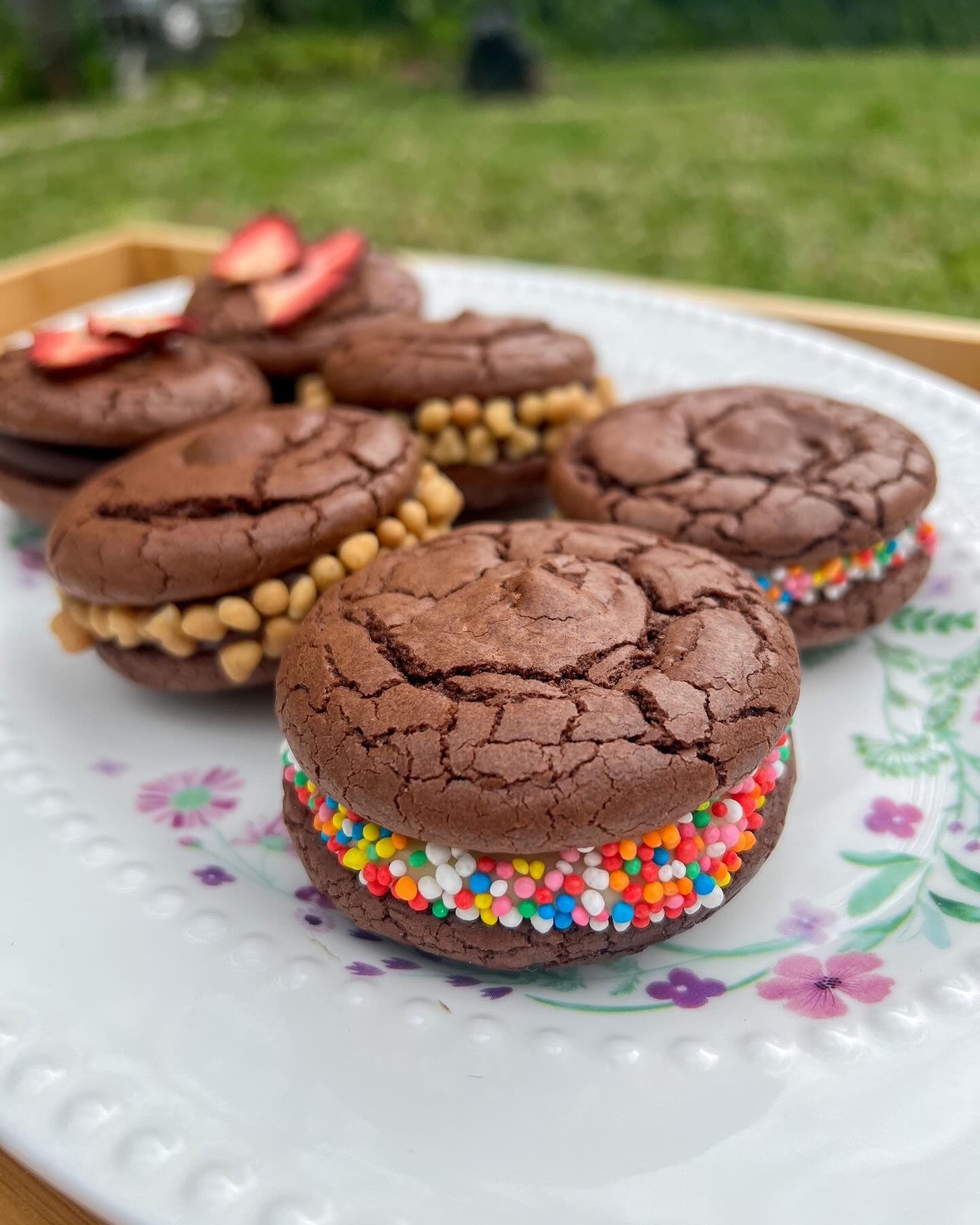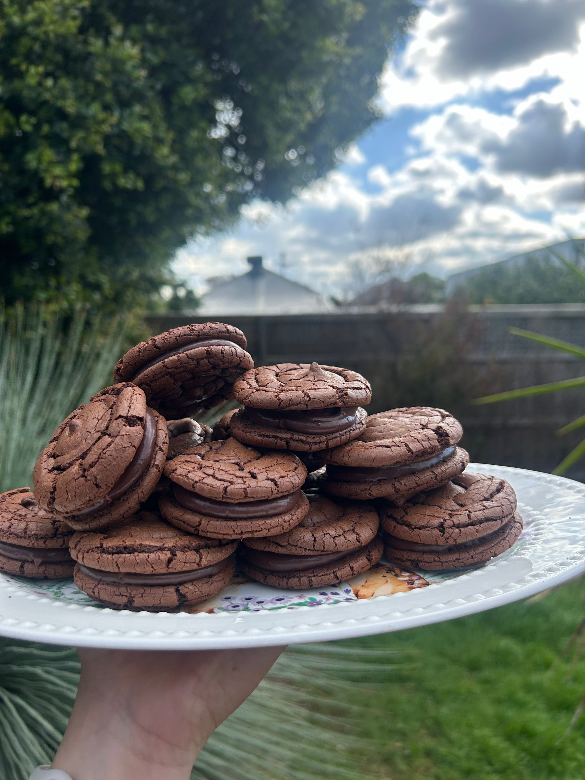 Our Brownie Cookie Sandwiches are the ultimate indulgence for any dessert lover. Imagine two rich, soft-baked brownie cookies with just the right amount of chew, perfectly paired and sandwiched together with a layer of silky chocolate ganache. But the magic doesn’t stop there — each one is filled with a deluxe centre of your choice, creating a decadent surprise in every bite.
