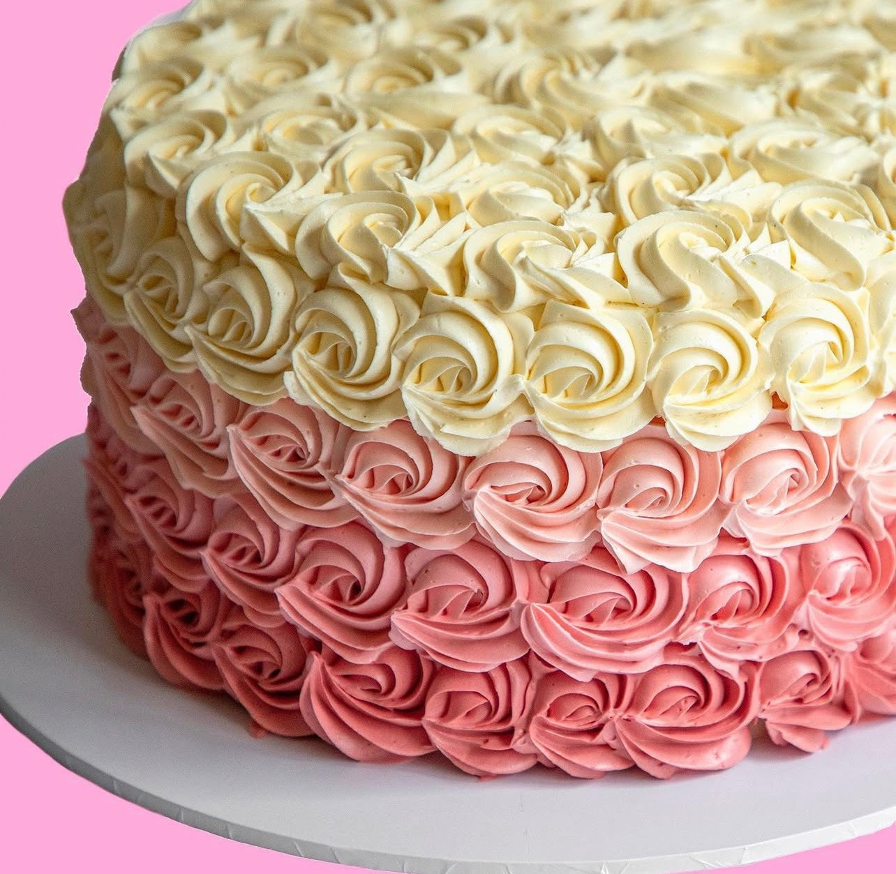 Large (8in) = 4 layers of cake (serves 35+)