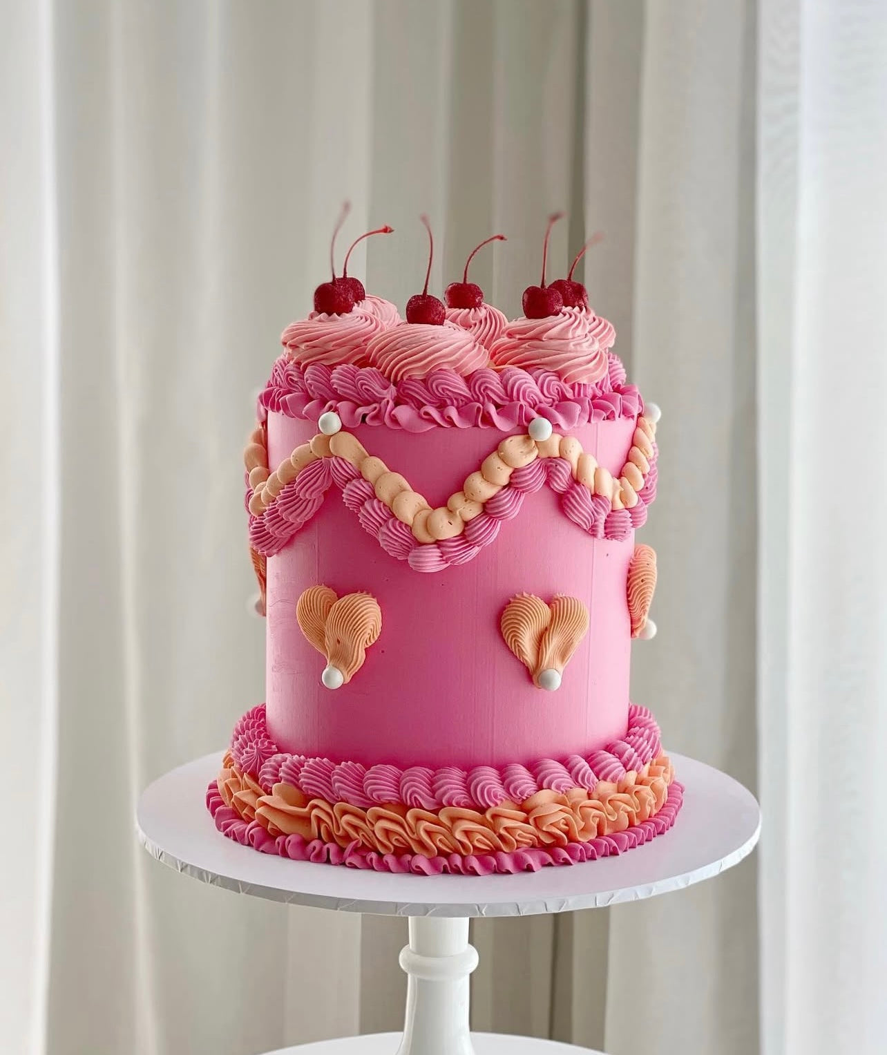 Medium (6in) = 3 layers of cake (serves 14-26)